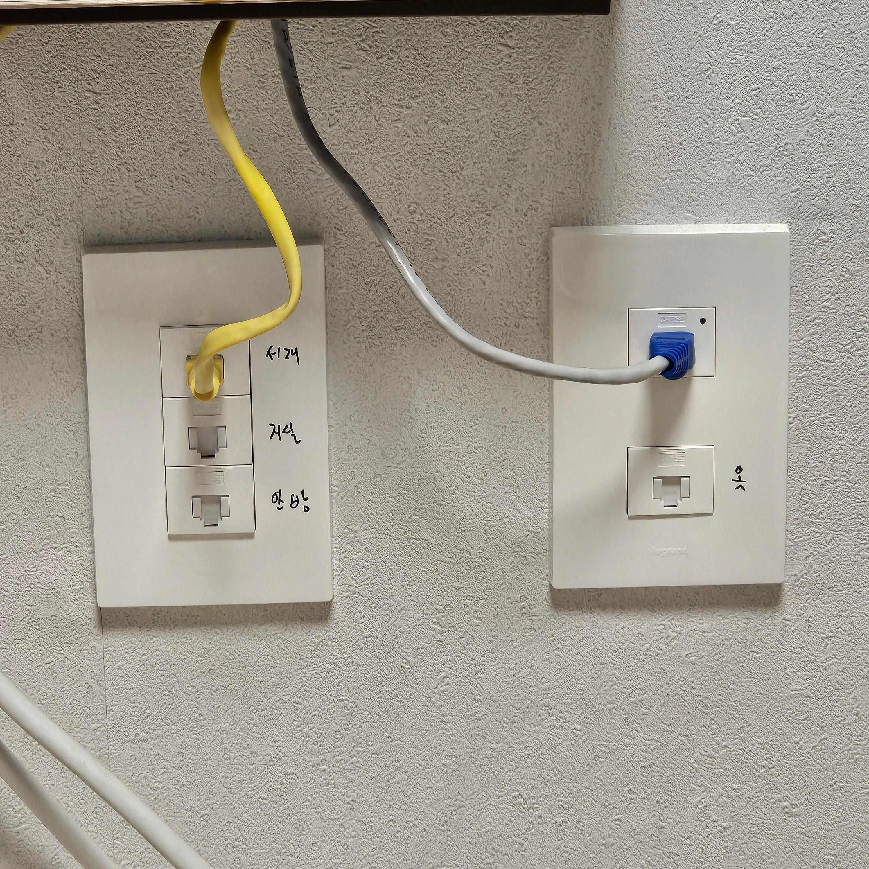 저희 집은 90년대 후반에 지어진 구축 아파트로, 처음에는 벽에 랜포트가 없고 전화선 플러그만 존재하던 구조였습니다.