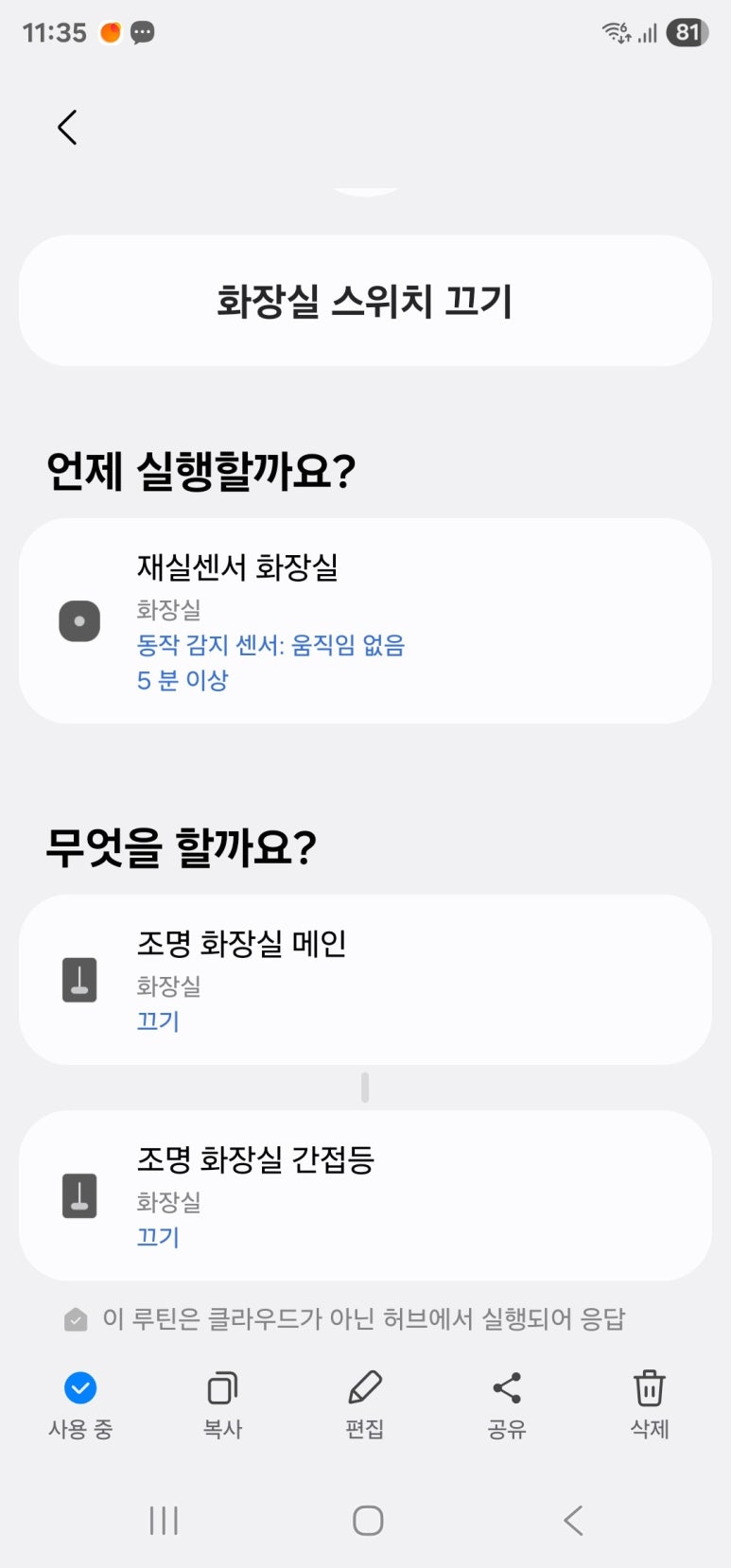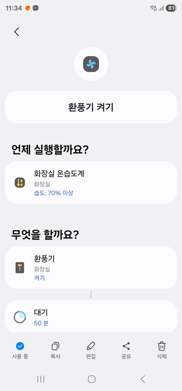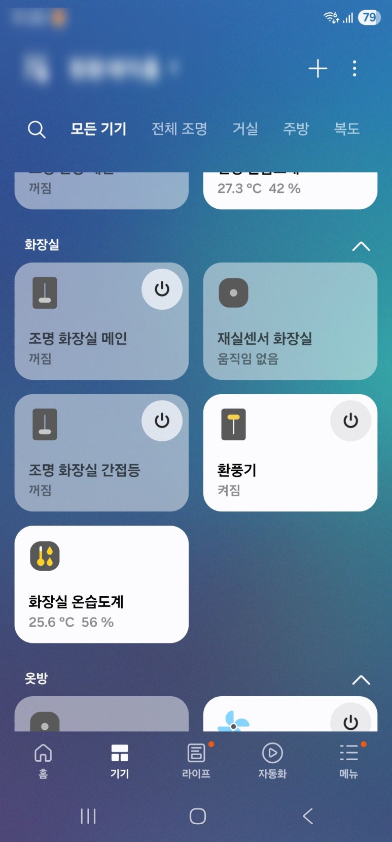 이미 많은 자동화 세팅이 되어있지만 화장실 스위치 끄는 것과 환풍기 작동 세팅 방법만 여기서 일단 공유해보겠다.