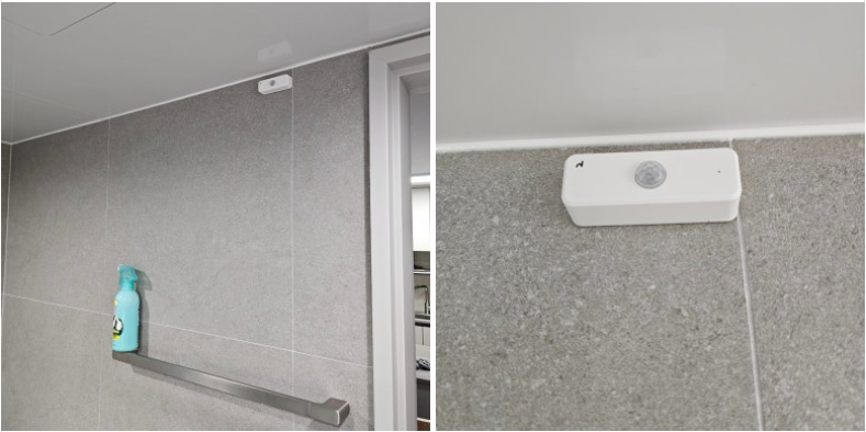 먼저 재실감지센서를 샤워할때건 양변기에서 생리작용을 할때건 언제든 감지가 되는 위치에다 부착을 한다.