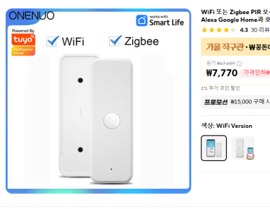 다합쳐서 만원도 안한다. 모두 zigbee호환제품으로 구매했다.